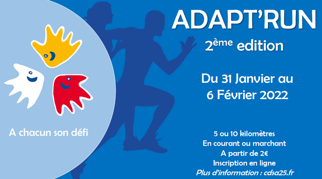 🏃🏻♀️🏃🏻♂️ L’Adapt’Run est une course / marche virtuelle solidaire organisée par le Comité Départemental Sport Adapté du Doubs.
